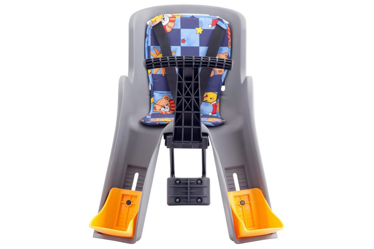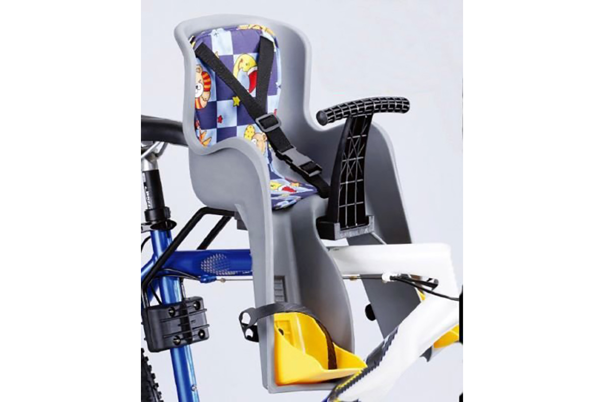 Сиденье детское SF-908 E для детей до 3 лет. Кресло надежно крепится на раме велосипеда, установка не требует профессиональных знаний, инструкция по установки прилагается. Безопасность обеспечивают ремни